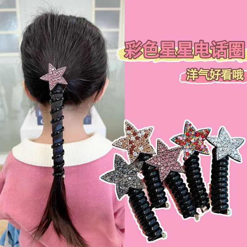 ラインストーンの星のまっすぐな電話線の髪輪の丈夫な皮筋の髪飾り2023の新型の高い馬尾の紐の高弾力の女性