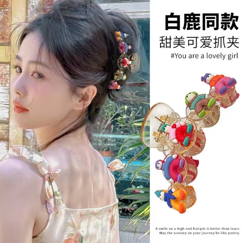 アニメかわいい少女クリップ頭飾りクリップ女2024新高級感ヘアクリップ後頭部盤髪サメクリップ