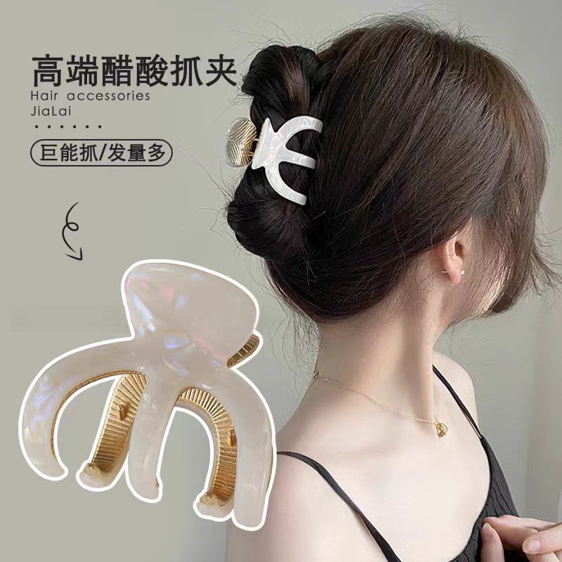 厚手の酢酸角クリップ ~ 高質感の後頭部クリップins韓国中号髪がサメをつかむクリップ幾何学