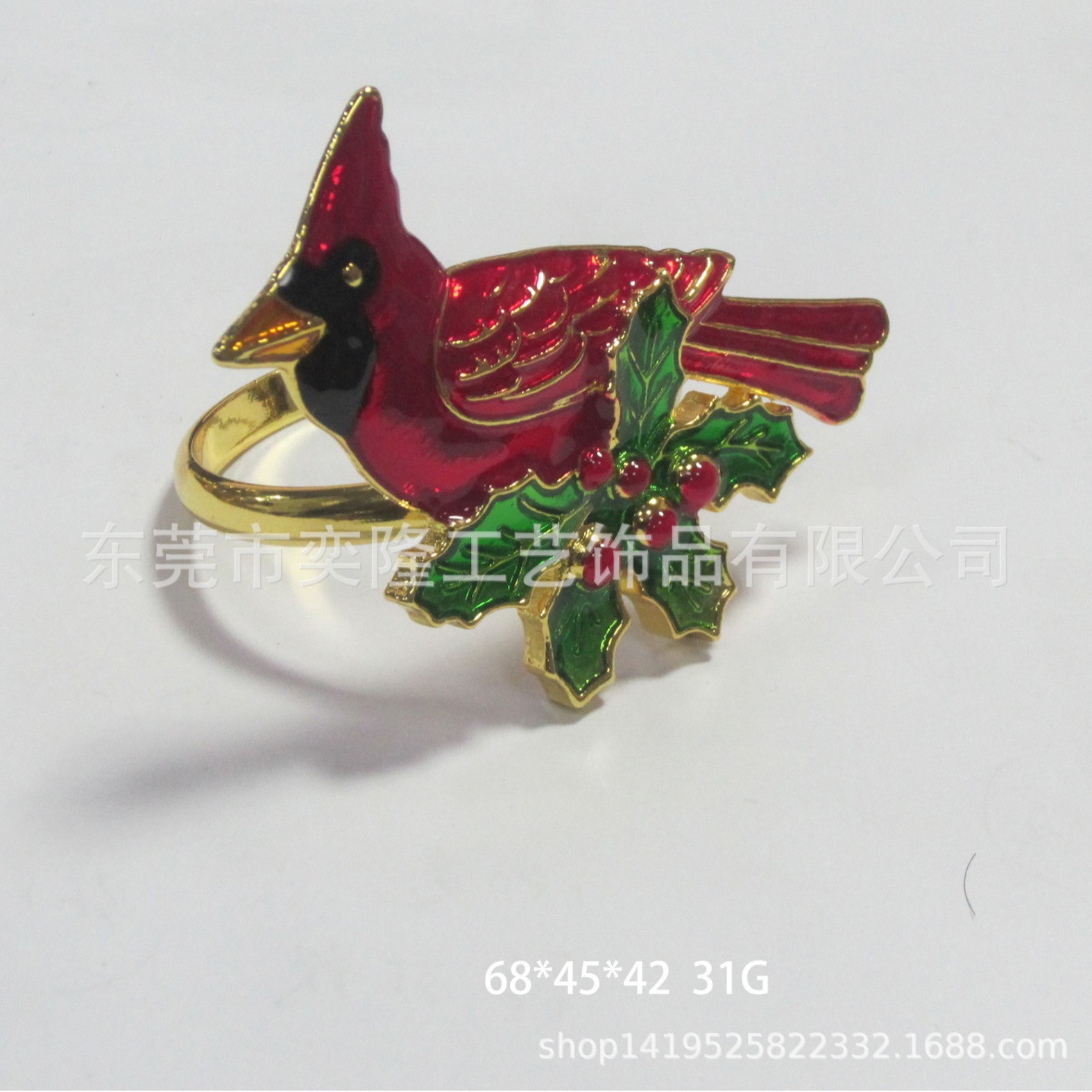 レッドバード形状ペーパータオルリング合金エナメル接着剤レッドバードナプキンリングクリスマスシリーズナプキンリングカスタム卸売