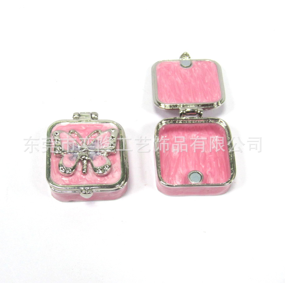蝶装飾正方形金属ジュエリーボックスエナメルカラージュエリーボックス金属工芸ギフトボックスメーカー卸売