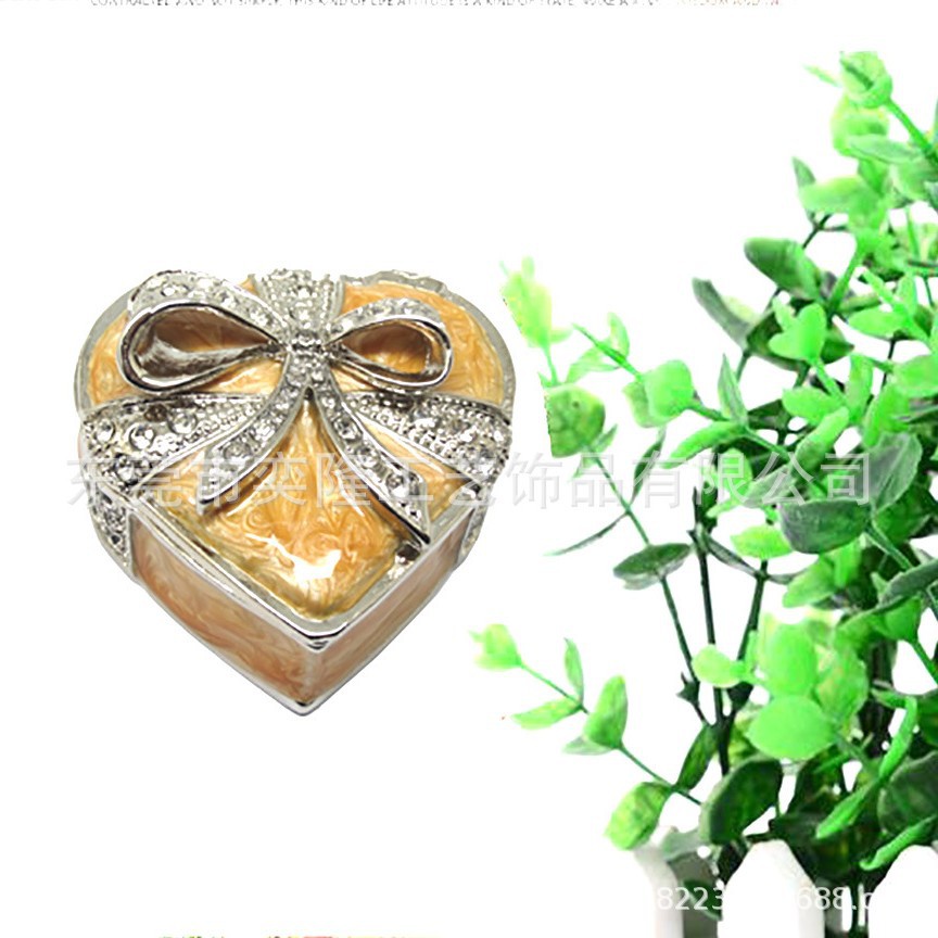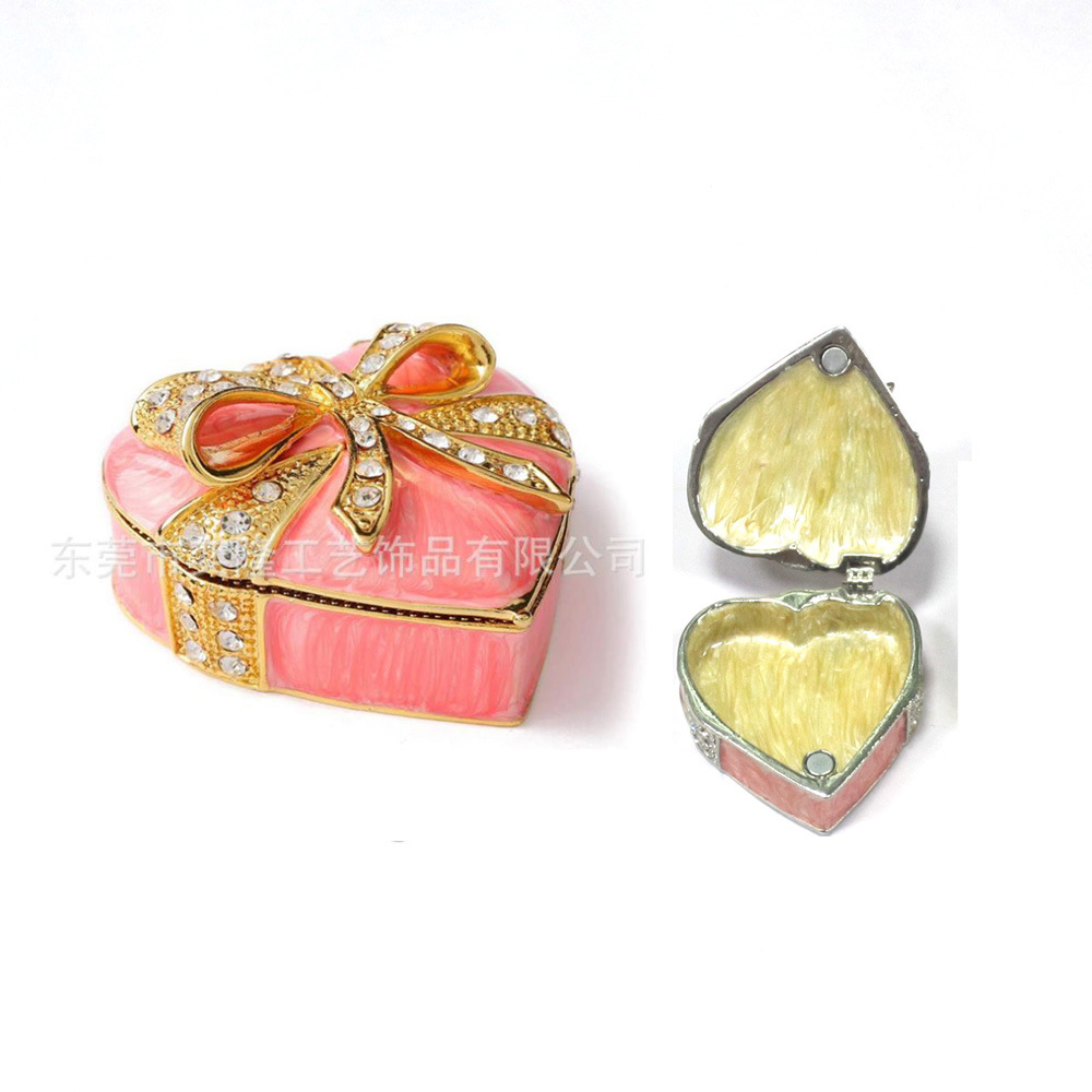 エナメル手作りカラー合金ハート型ジュエリーケース蝶結びハート型ジュエリーケース家庭用小物メーカー直販