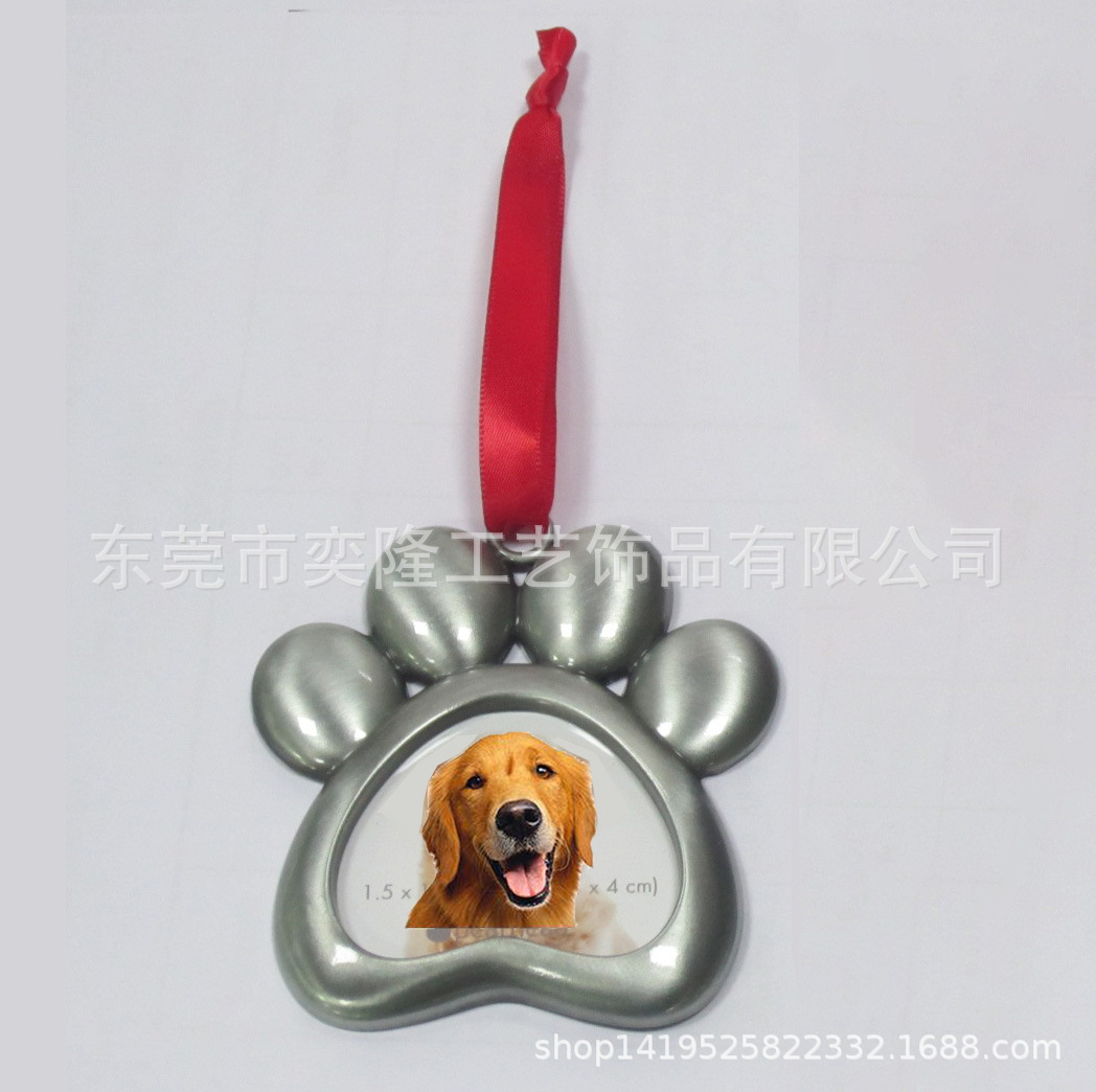 レトロなクリスマスのフォトフレームは亜鉛合金のフォトフレームストラップメーカーにペットの犬の爪の金属の小さいフォトフレームストラップを供給します。