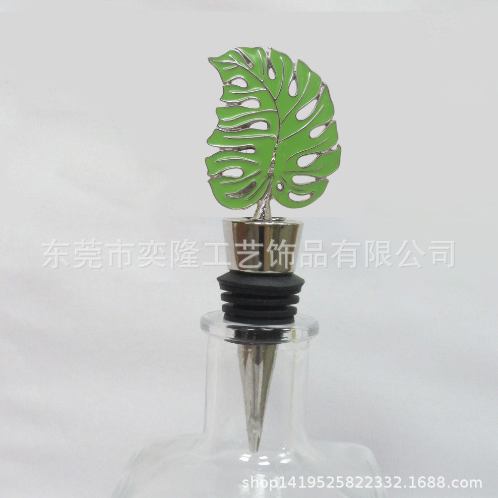 緑の木の葉の酒の瓶の栓の合金の植物の葉の形のワインの瓶の栓のメーカーは卸売りして糊を塗って瓶の栓を塗ります。