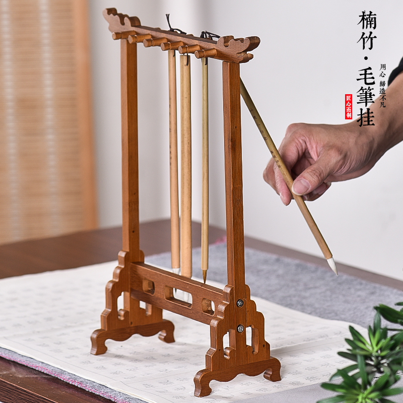 レトロでシンプルな現代楠竹毛筆にペンをかける学生は文房四宝で創造的なペンを飾って書道用品を置く