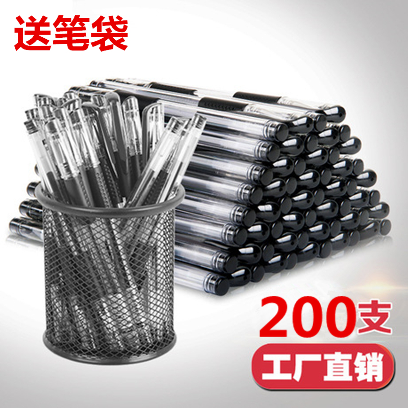 200本0.5水筆黒色水性ペン備考弾頭ビジネスペンサイン事務中性ペン滑り止めゴムカバー