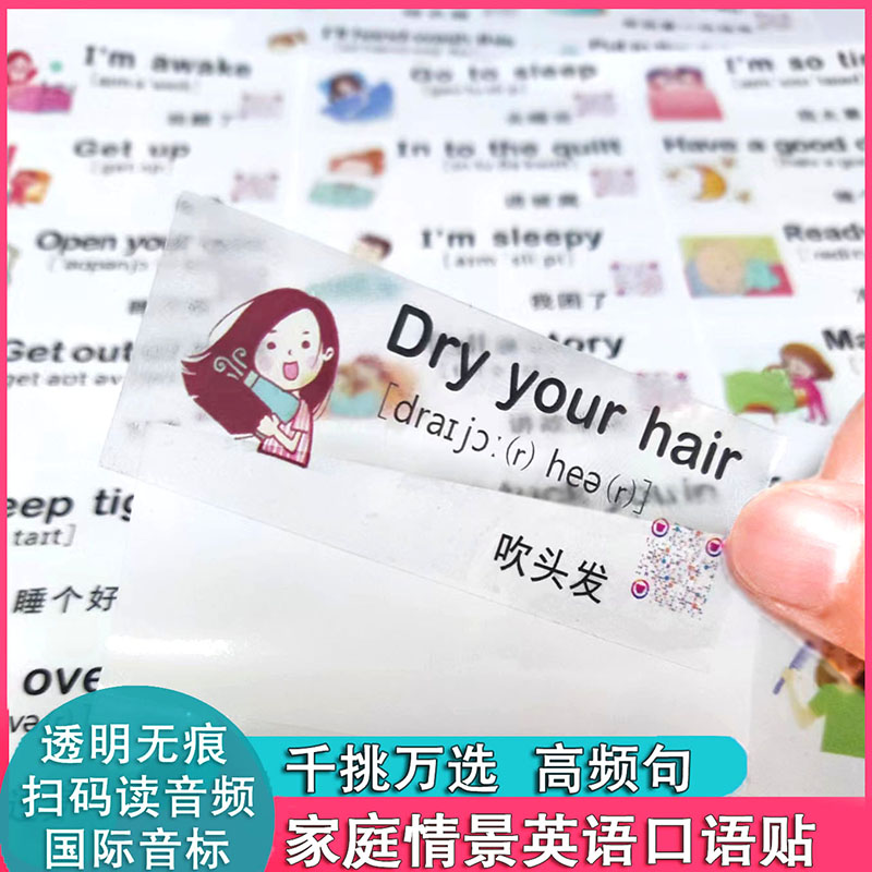 家庭情景英語シール日常用生活口語早教啓蒙スキャンコード防水透明指令付箋