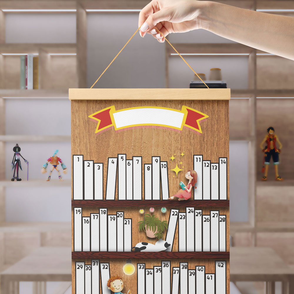 子供がカードを読む本棚の小学生が記録表を読むのに慣れています。