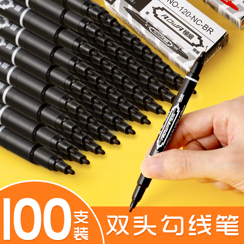 マーカーペン黒学生用小さなダブルヘッド水性ペン速乾マークペン子供絵画手描き線ペン