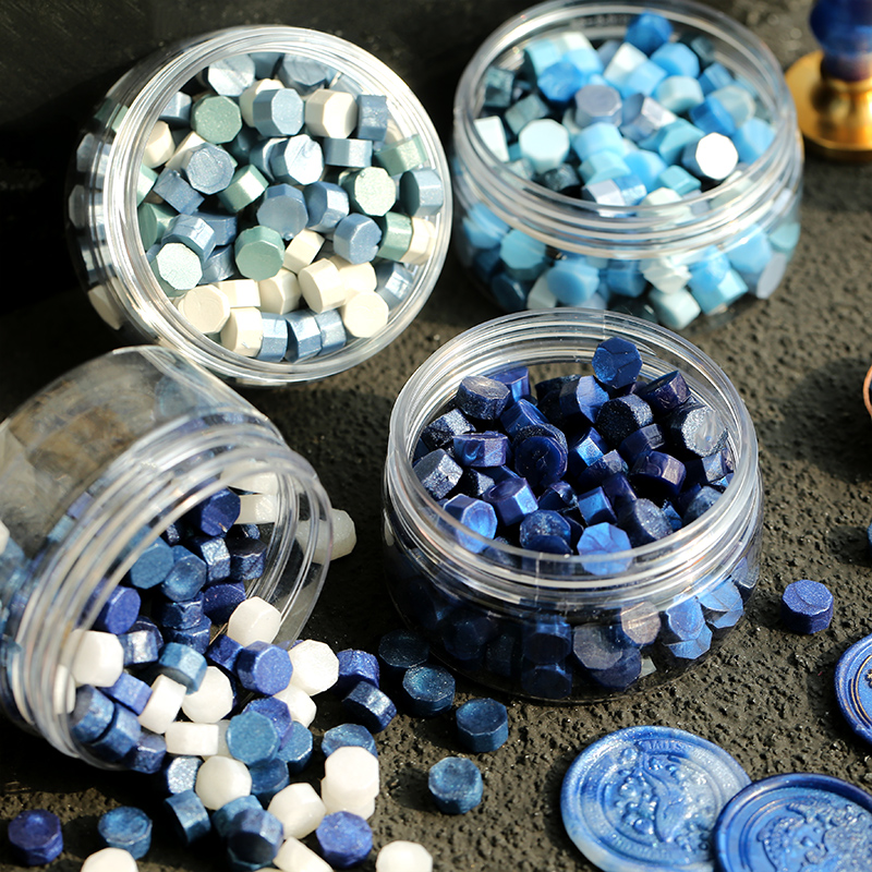 パール色のペンキとワックスの粒の混色のペンキの印鑑とワックスの粒の北欧色の結婚式のグリーティングカードの招待状の封筒の封口のペンキ
