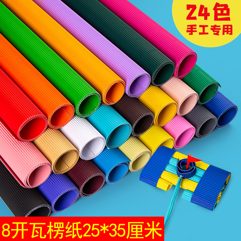 24色カラー段ボール手作り材料紙diy作品学生幼稚園波形8開厚紙模型紙