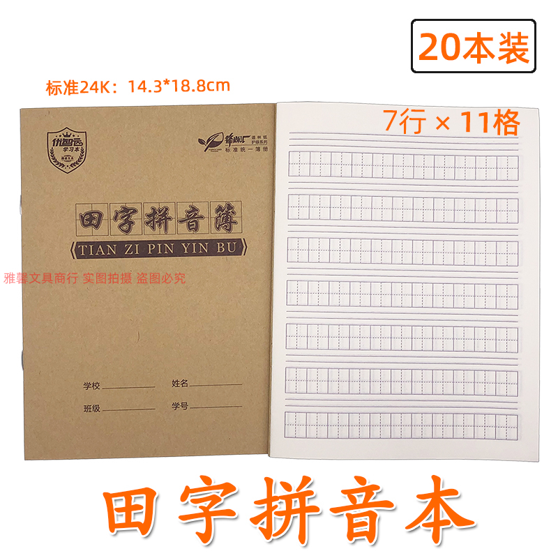牛革面田字スペル本24k田字格中国語ピンイン作業帳漢字練習統一標準帳簿