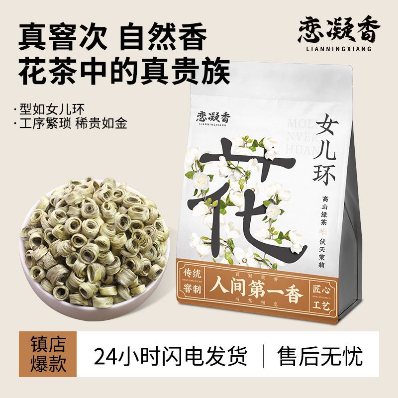 恋凝香娘環ジャスミン茶特級濃香型新茶葉高級濃香貴妃雪環50g袋入り