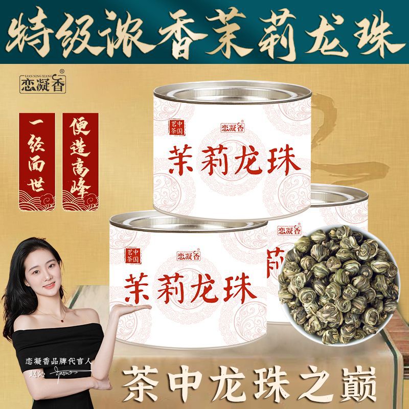 恋凝香特級ジャスミン白龍珠2024新茶広西横県香珠刺繍玉濃香ジャスミン茶缶
