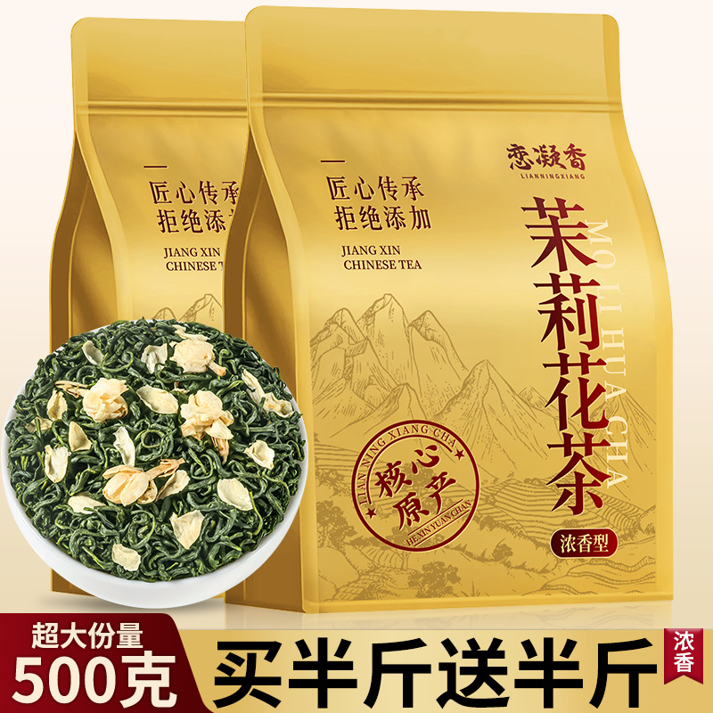 恋凝香特級2024新茶ジャスミン茶茶葉龍ミリ濃香耐泡横県ジャスミン白ミリ花茶500g