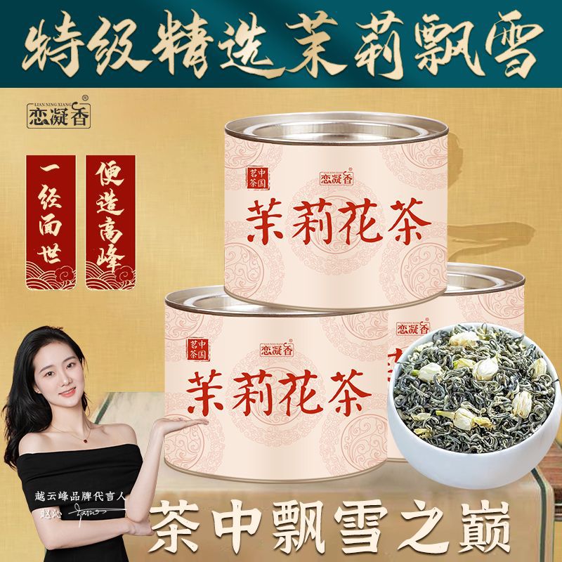 恋凝香特級茉莉漂雪2024新茶正統横県濃香耐泡型茉莉花茶葉缶