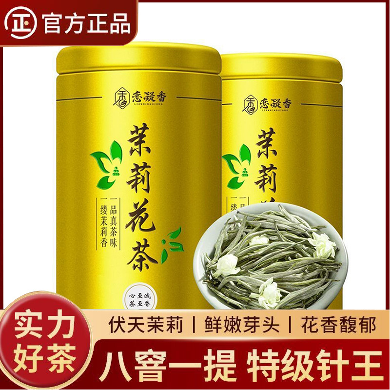 恋凝香十珍品銀針ジャスミン茶葉新茶若芽特級濃香型草花緑茶缶
