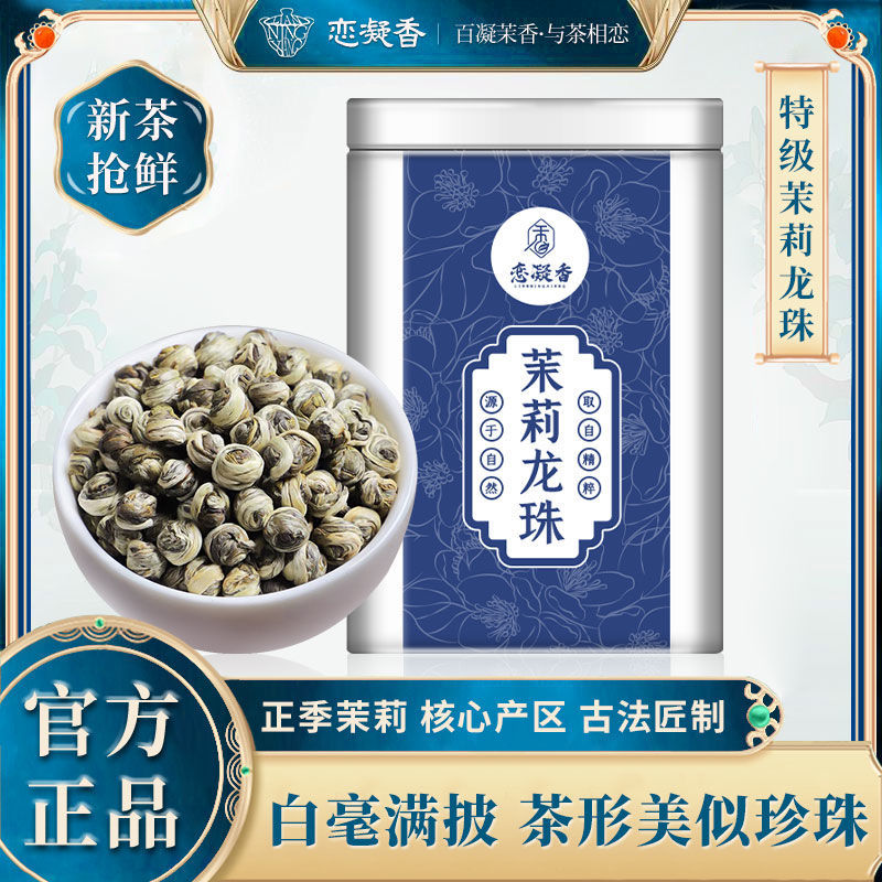 恋凝香特級茉莉龍珠2024新茶広西草花茶葉若芽濃香耐泡型缶200g