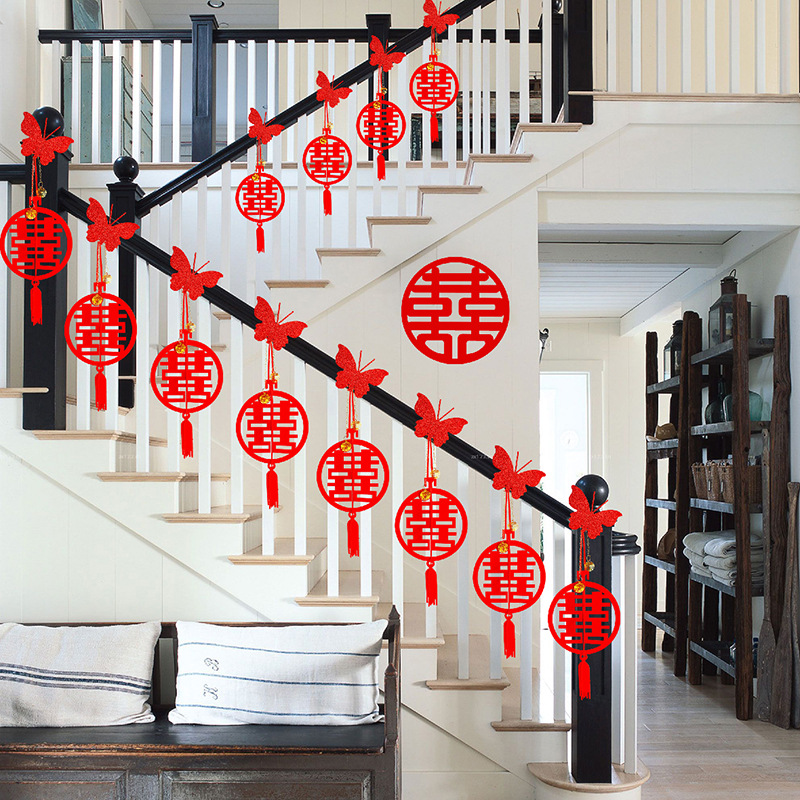 結婚階段手すり装飾花喜字ストラップ男性女性結婚部屋配置装飾結婚用品大全
