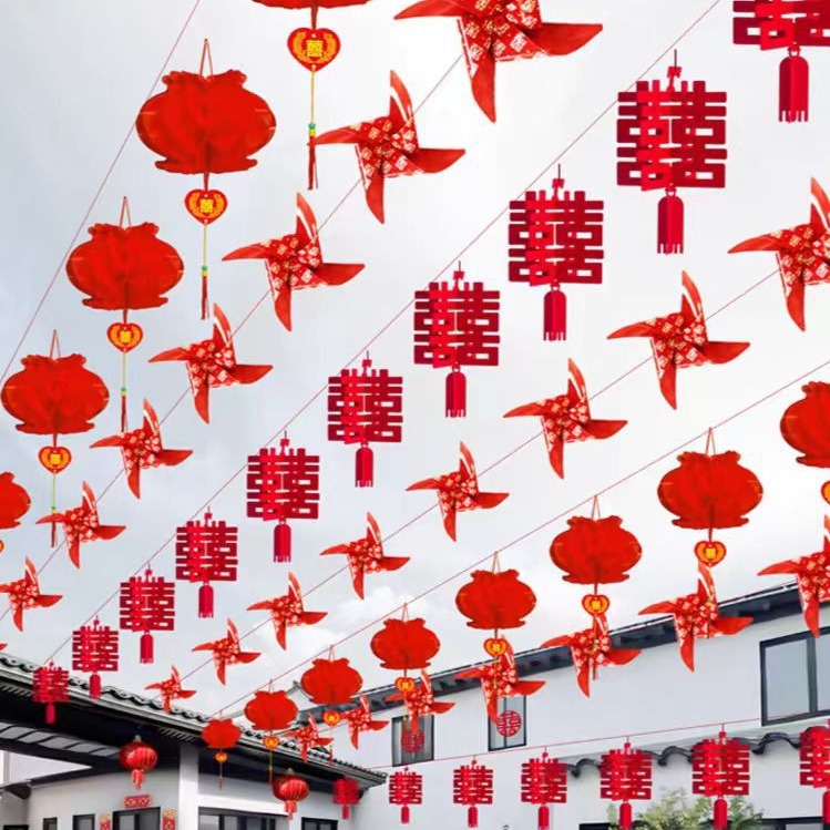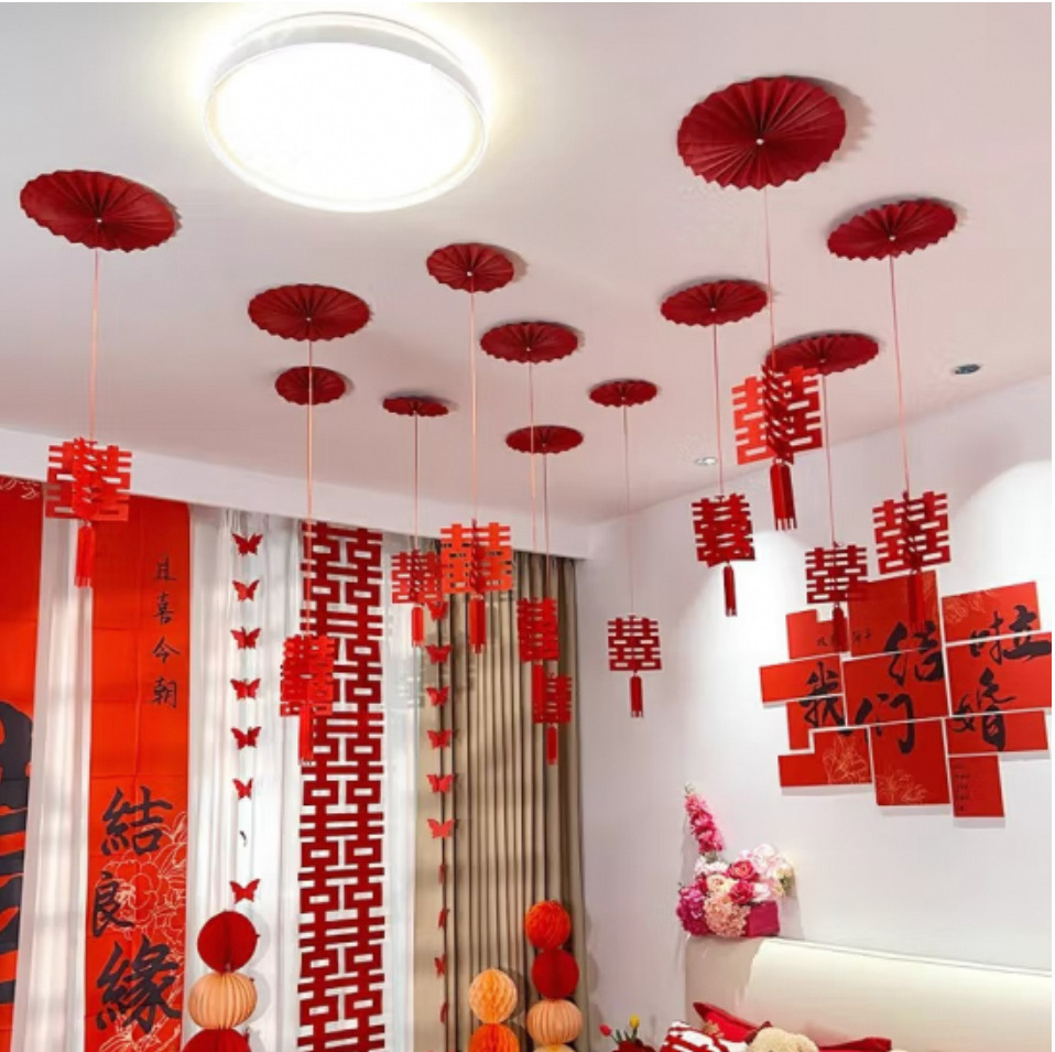 結婚立体ペンダント喜字ペンダントセット花を引っ張る結婚式の寝室のリビングルームの廊下のアイデアのウェディング用品