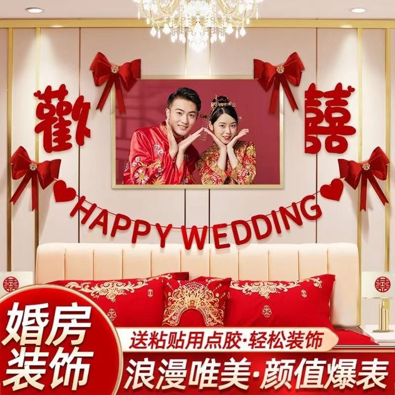 結婚式の部屋のレイアウト、女性のリビングルーム、寝室、結婚式の装飾、新しい家の結婚式の天井、ハッピーワードラテアートセット、ウェディング用品