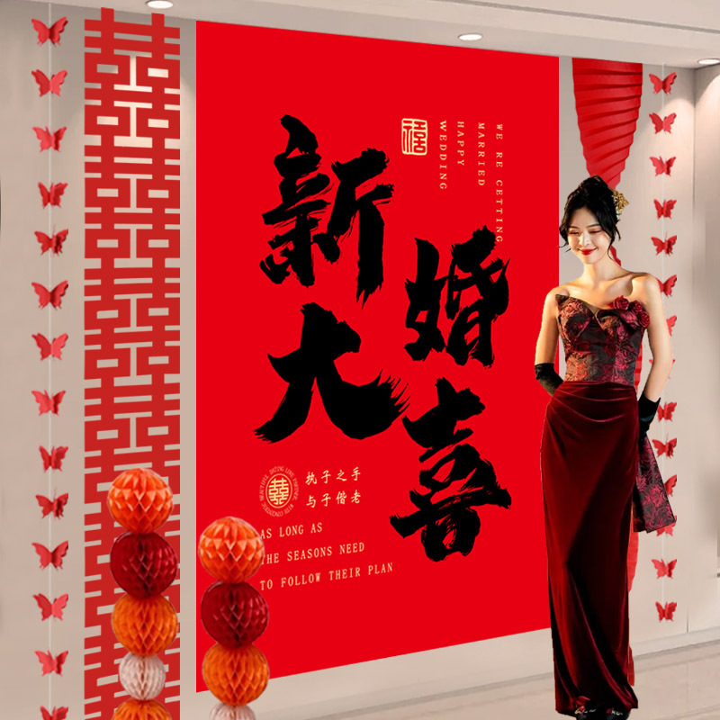 結婚部屋の配置は結婚して布を掛けます。背景の壁は客間の男性側の女性の朝の服を飾ります。