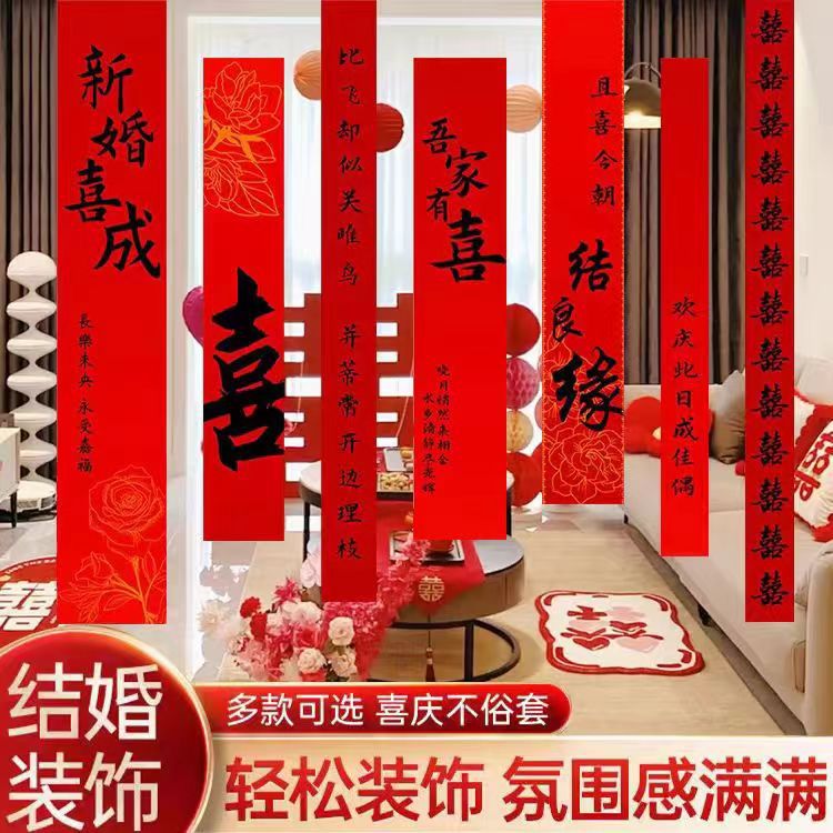 結婚対聯入戸門婚姻連房配置用品男性女性側新居装飾喜聯喜字シールセット