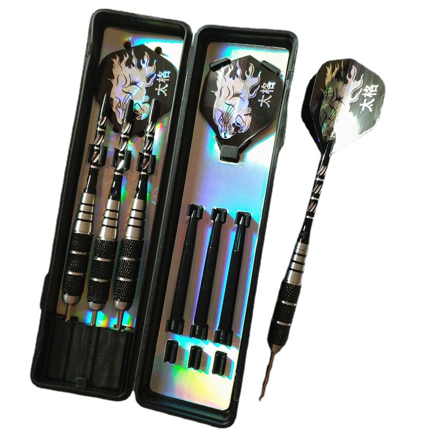 3本入れステンレス + 彫刻アルミ棒全金属アルミ合金ダーツ針16cm長dartsセット100g