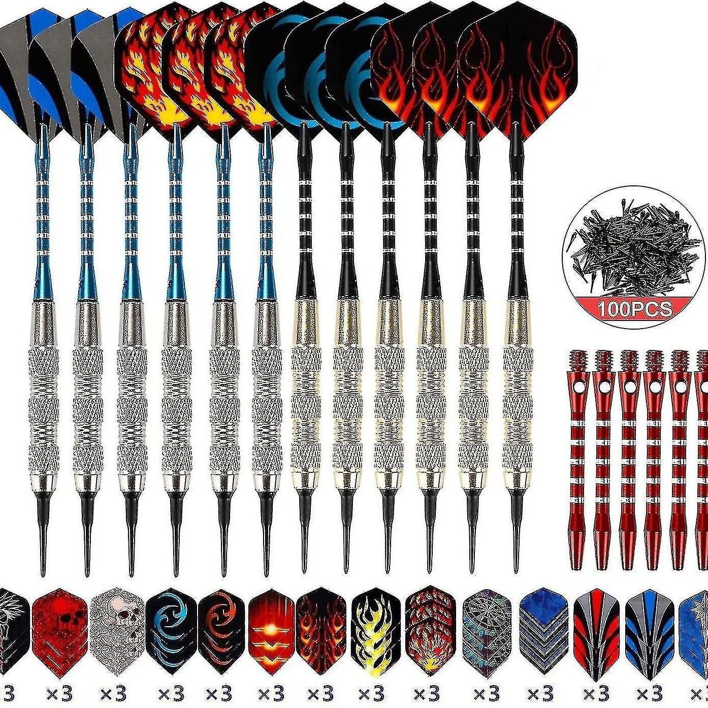 在庫あり 18g 鉄メッキ銅安全ソフトダーツ ダーツ12本+尾翼30本+ヘッド100本+アルミポール6本