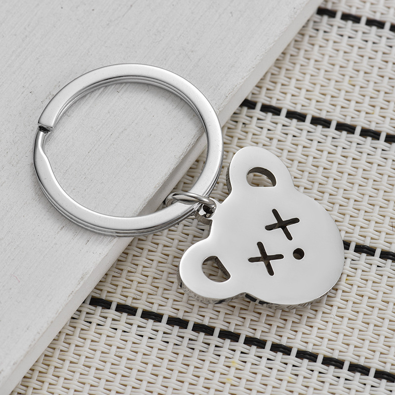 クリエイティブ新型金属ステンレスキーホルダーxx熊頭ペンダント自動車キーホルダーアクセサリープレゼント