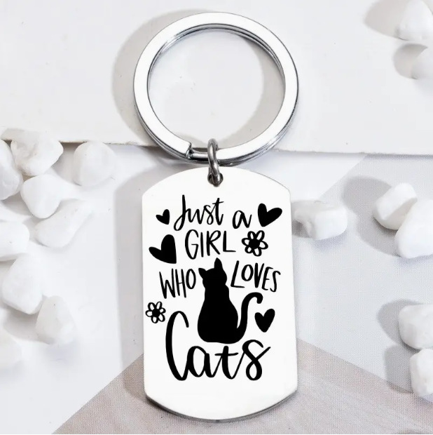 国境を越えて人気loves cats猫ステンレスキーホルダーはレーザーdiyストラップで親友にプレゼントすることができる