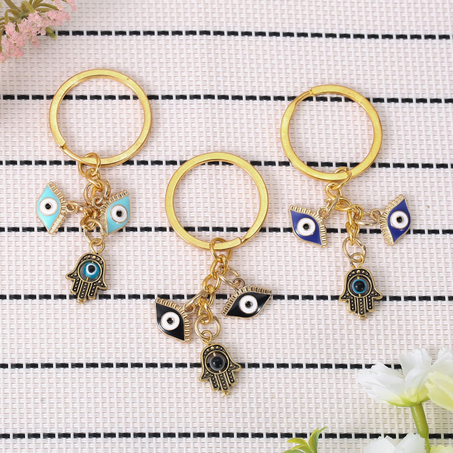 国境を越えて人気のある悪魔の目の金属のキーホルダーファティマの手のひらのキーホルダートルコの目のペンダント