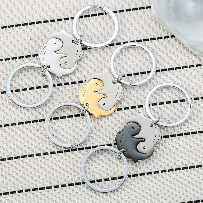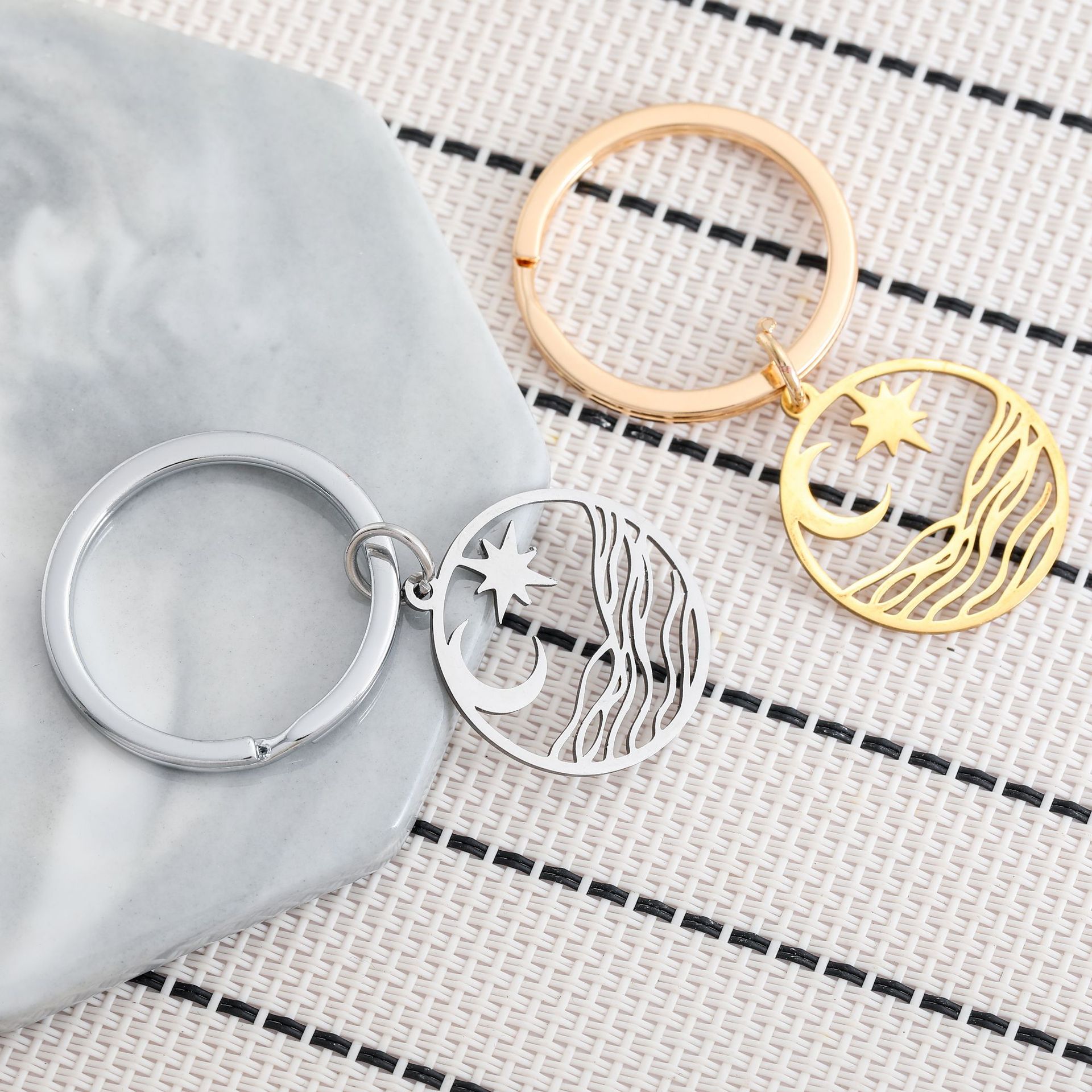 クロスボーダー新作星月波ステンレスキーホルダーカップルペンダントバレンタインギフトリュックサックキーホルダー