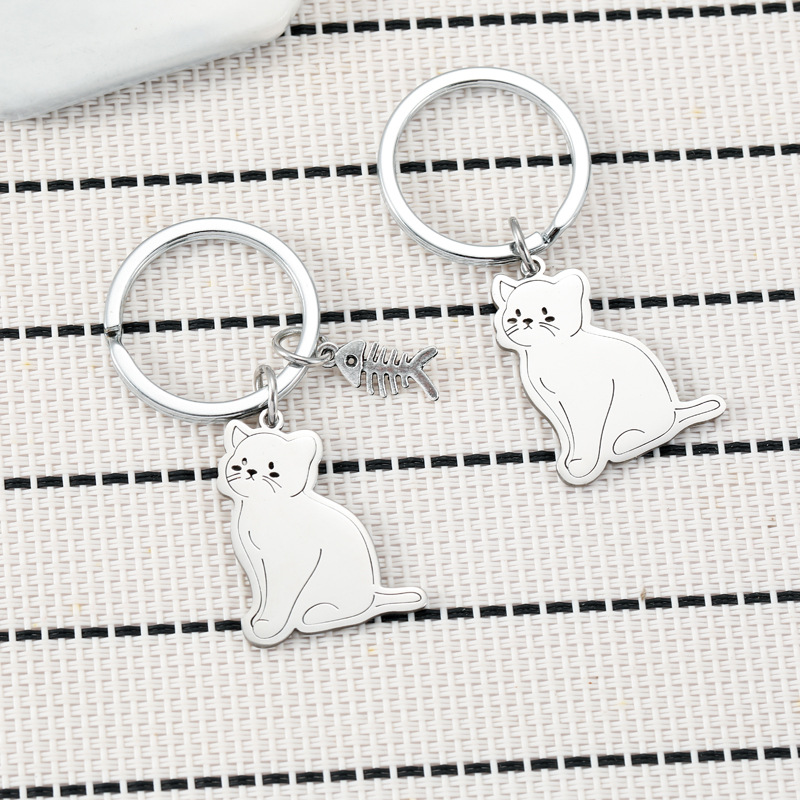 クロスボーダーの新型韓国系アニメ猫は魚が好きです。ステンレスのキーホルダーが可愛いです。