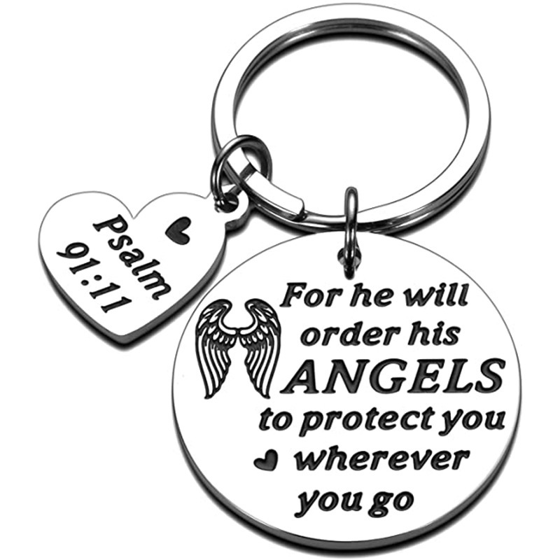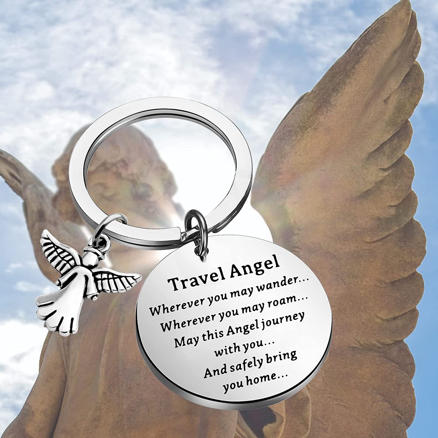 クロスボーダーの新型旅行天使のキーホルダーステンレス天使のペンダントの丸いキーホルダーのリュックサックのペンダント卸売り