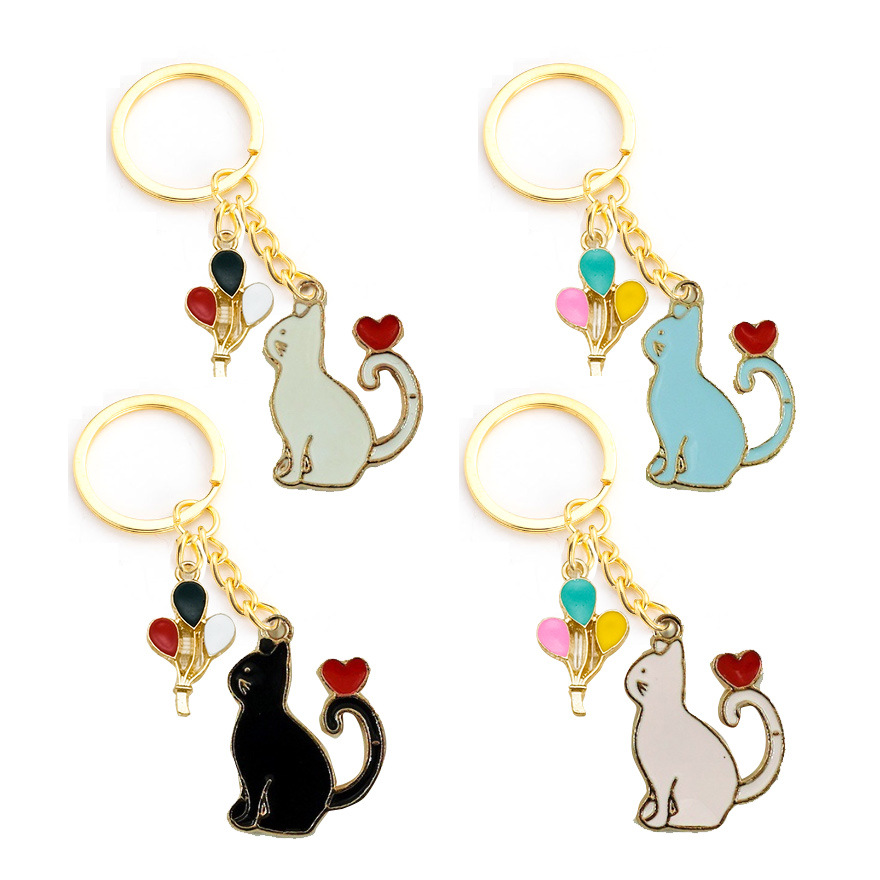 かわいい風船子猫合金キーホルダーかわいいアニメ小動物ストラップバッグキーホルダー小プレゼント卸売り
