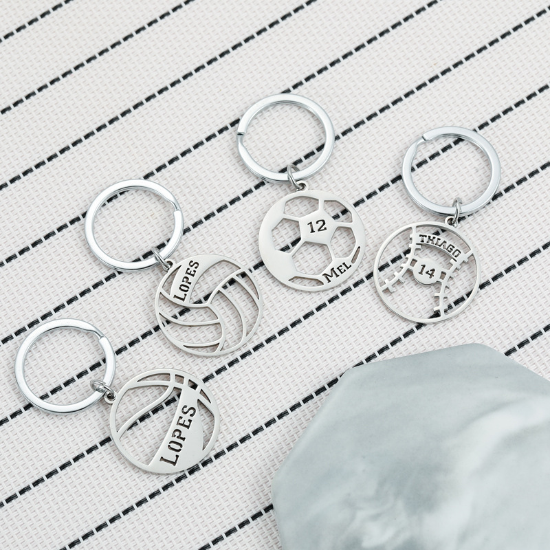 欧米の創意は簡単で、透かし彫りのテニスのサッカーの英語のアルファベットのステンレスのキーは自動車のリュックサックのペンダントを掛けます。