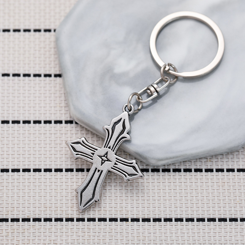 国境を越えた新型復古十字架金属キーホルダー個性男女同型キーホルダー自動車ペンダント卸売り