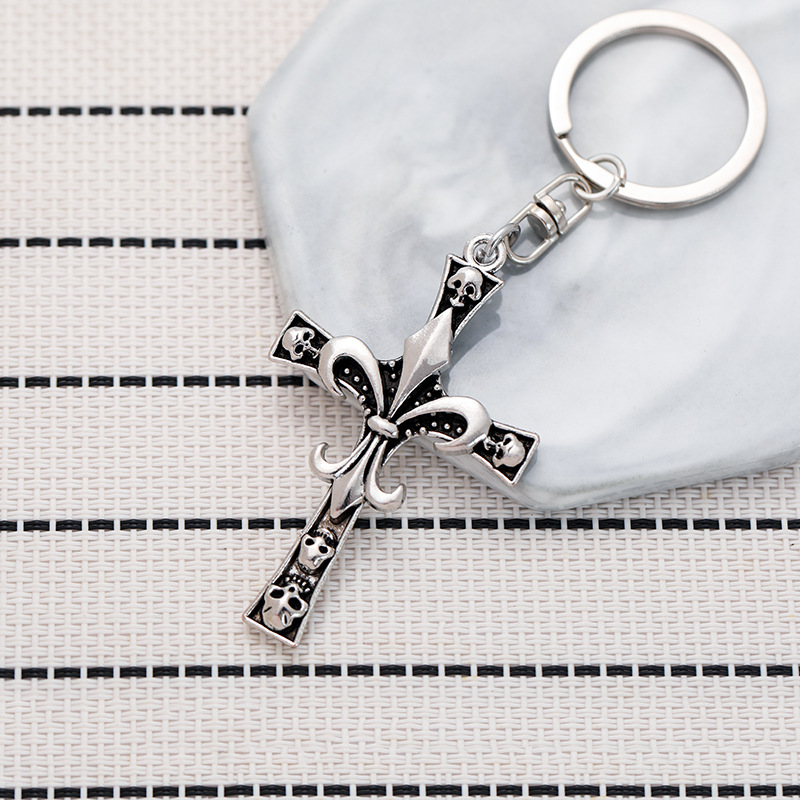 欧米のクロクロの炎の十字のキーホルダーの小さい大衆のパンクの復古はストラップの自動車のペンダントの卸売りをします。