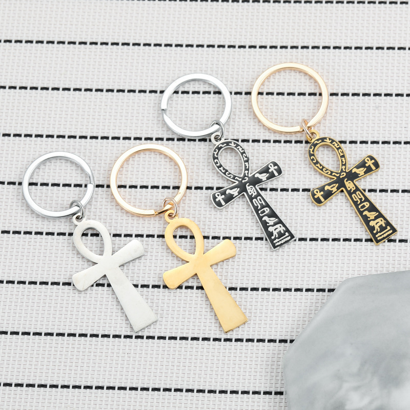 国境を越えたステンレス古代エジプト記号安カードキーホルダーAnkh生命記号自動車ストラップ