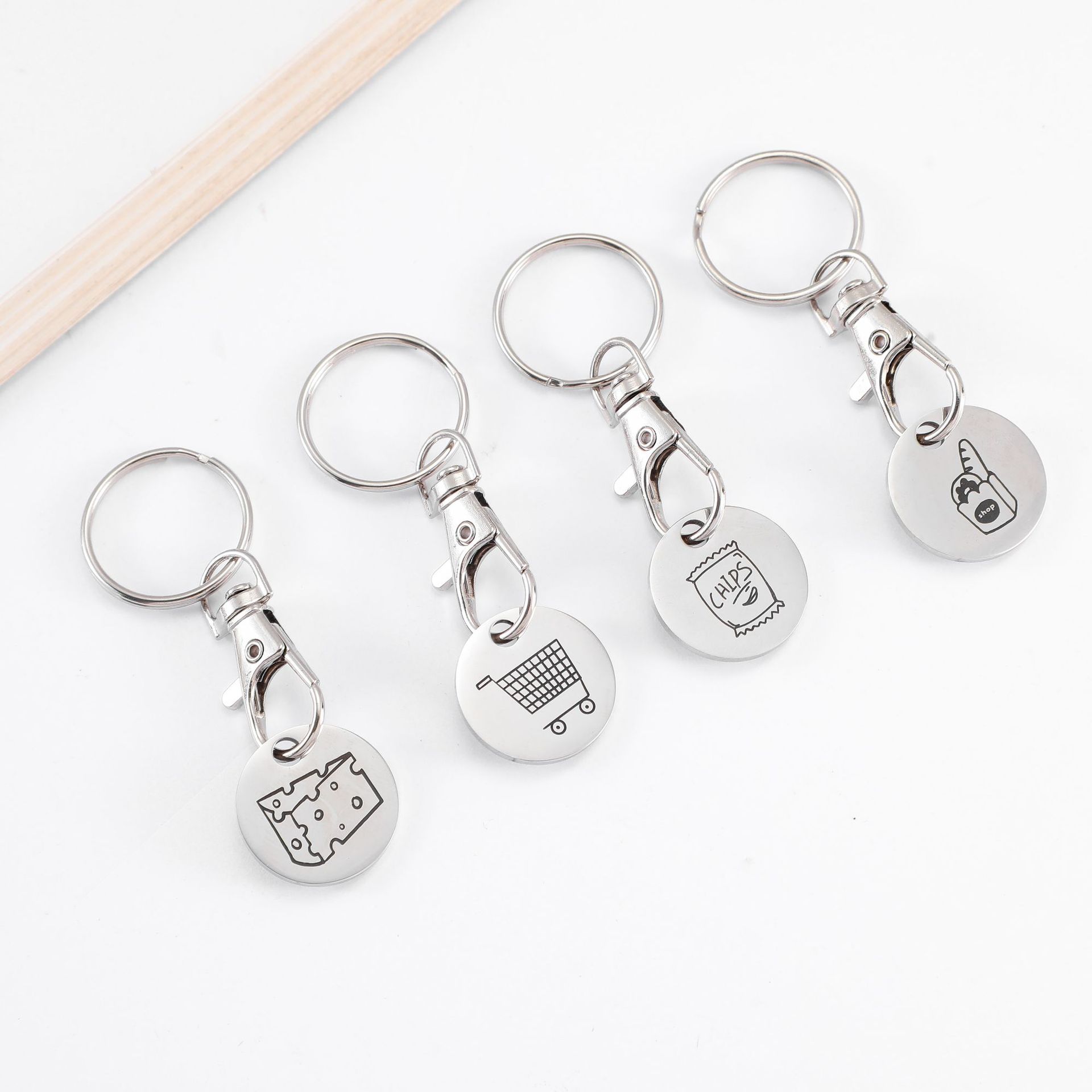国境を越えた対外貿易アニメのショッピングカートのコインステンレスのキーホルダーは車のコインに代わってスーパーの手押し車のペンダントを飾っている