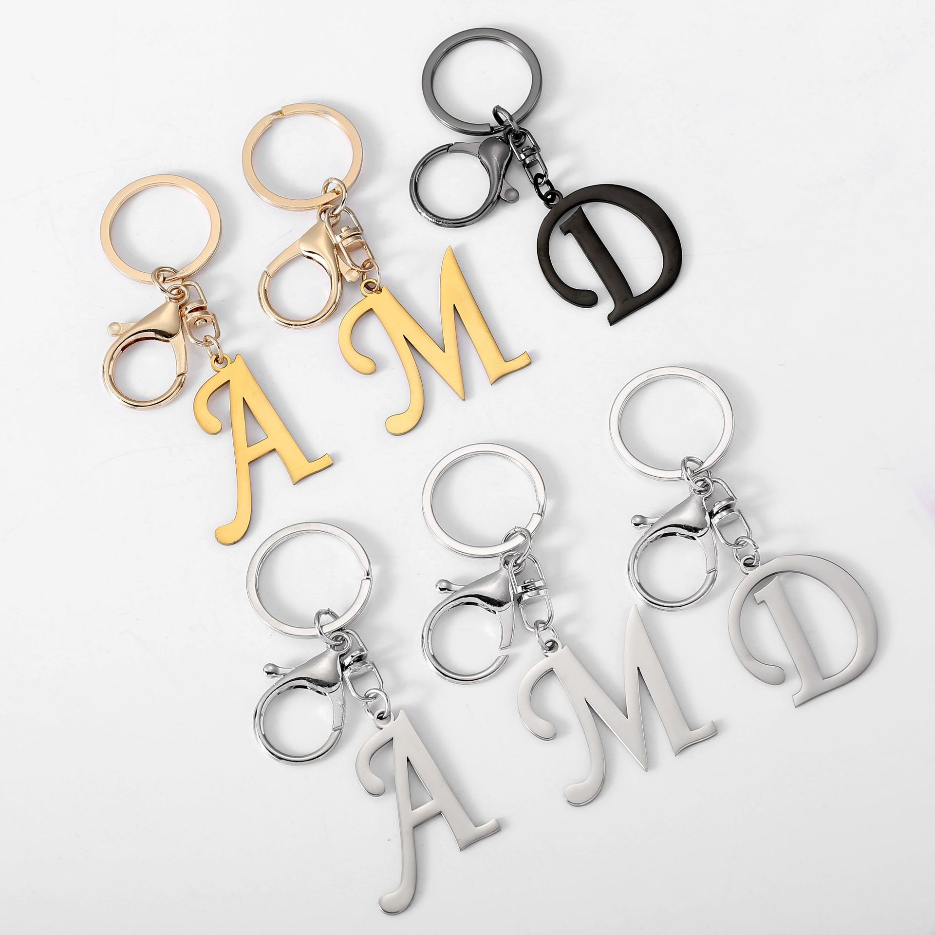 アマゾンの人気研磨26文字ステンレスのキーホルダーチタン鋼のキーホルダー欧米のプレゼントのリュックサックのペンダント