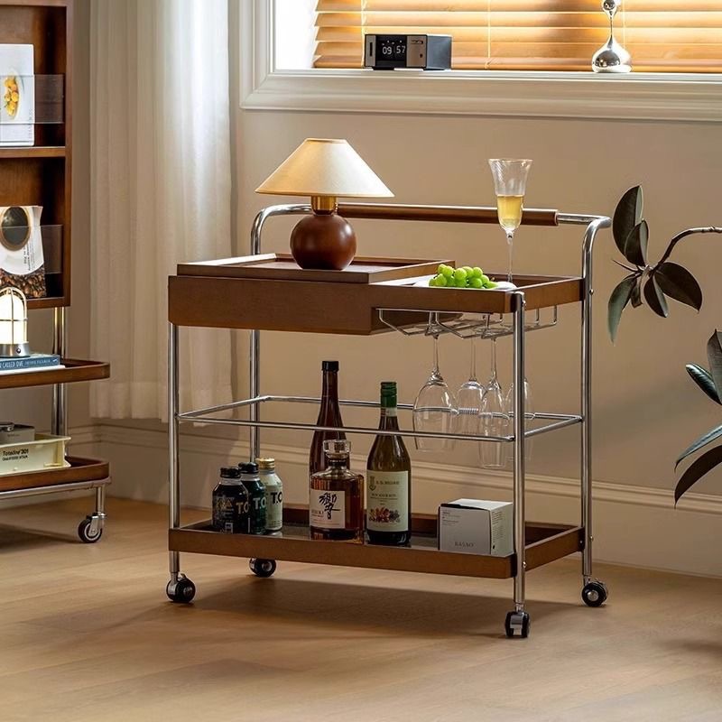 無垢材のリビングルームの可動ソファサイドテーブル、ワックスウッドのレトロなサイドキャビネット、コーナーテーブル、小さなコーヒーテーブル