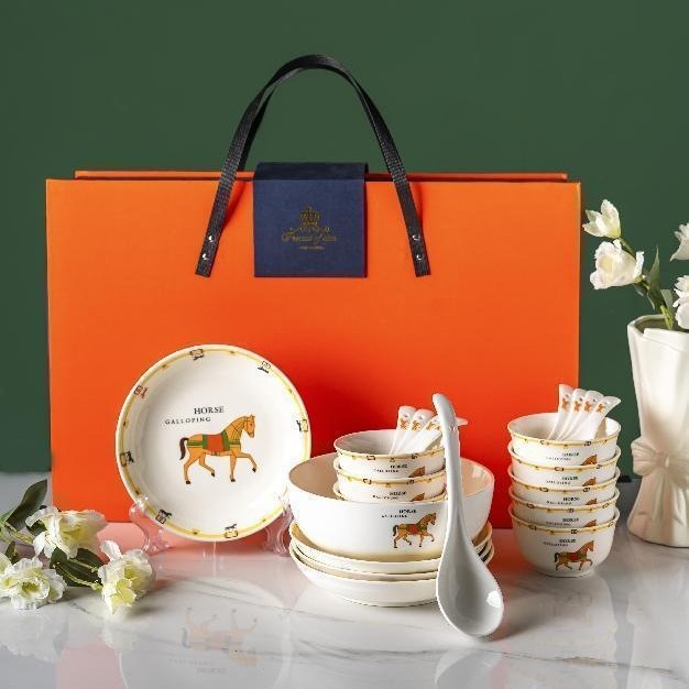 Meishang ライト高級ギフトボックス馬セットクリエイティブセラミック食器家庭用ボウル、プレート、スプーンビジネスイベントメンバーシップギフト