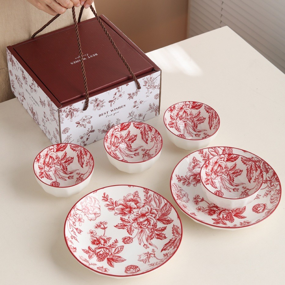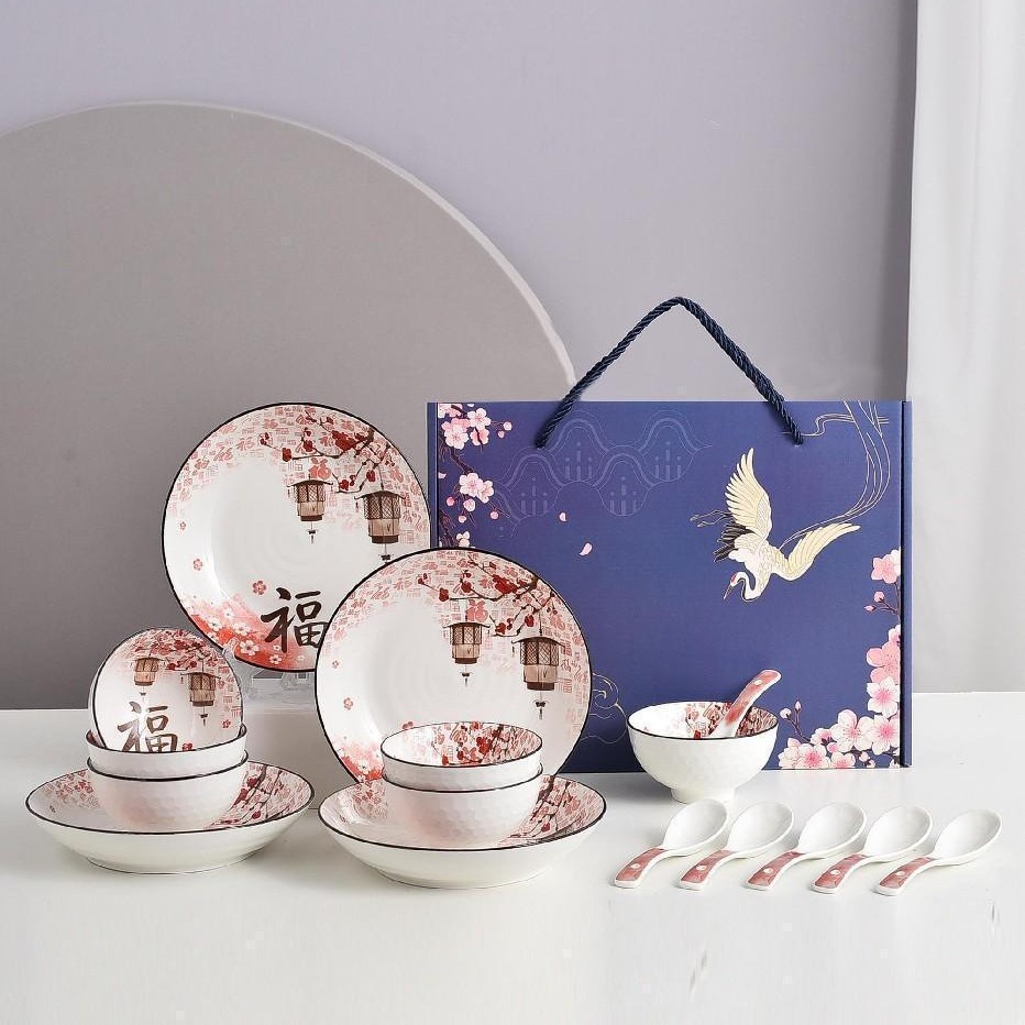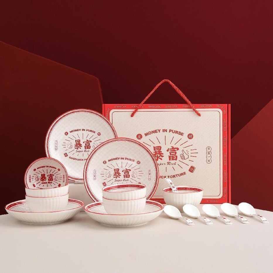 Jutaoren 富の赤いクリエイティブ食器セット家庭用セラミックボウル、プレート、スプーンビジネスイベントのお土産グループ購入