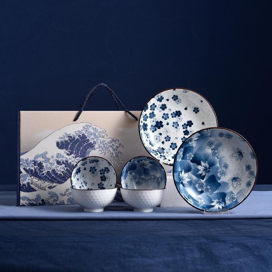 Jutaoren 神奈川ブルー塗装クリエイティブセラミックボウル、プレート、スプーン家庭用食器セットハイエンドビジネスメンバーシップギフト