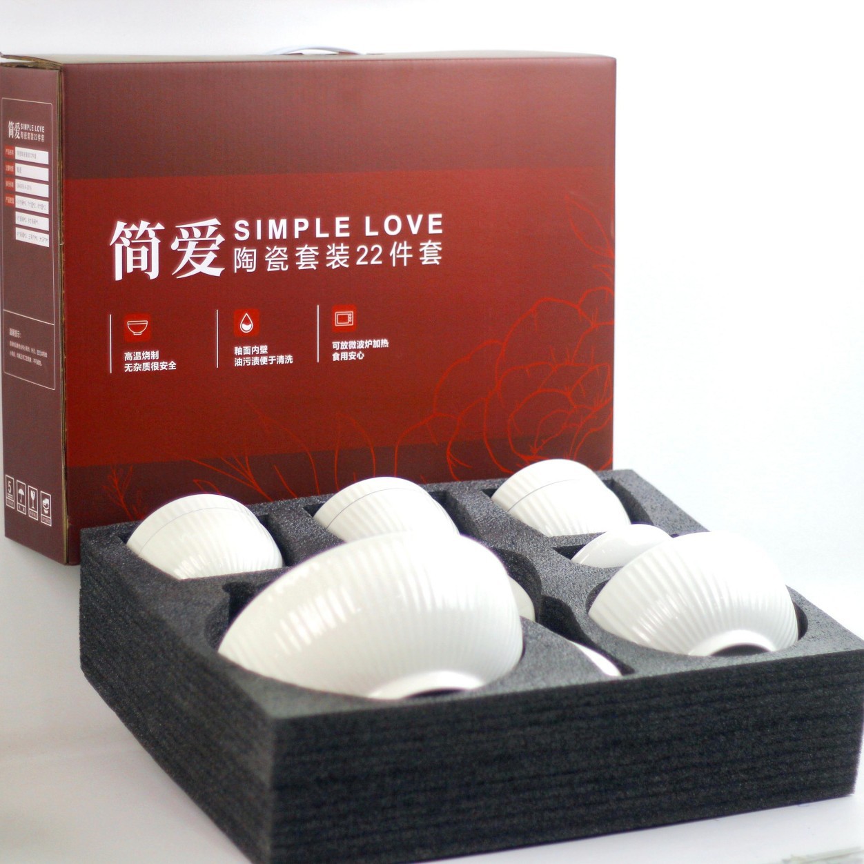 Junmei 黒ライン垂直パターン 22 ピース食器セットクリエイティブシンプルな家庭用セラミックボウル、プレート、スプーンビジネスギフト卸売