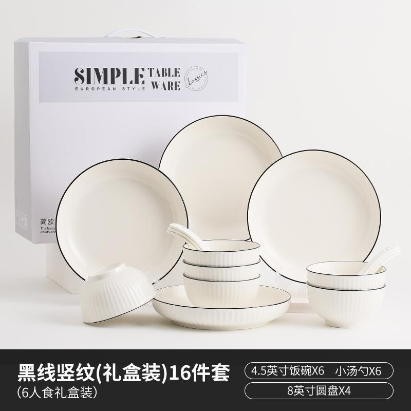 Junmei 黒ライン縦模様食器セットクリエイティブセラミック家庭用ボウル、プレート、スプーンビジネス会員ギフト新築祝いギフトグループ購入