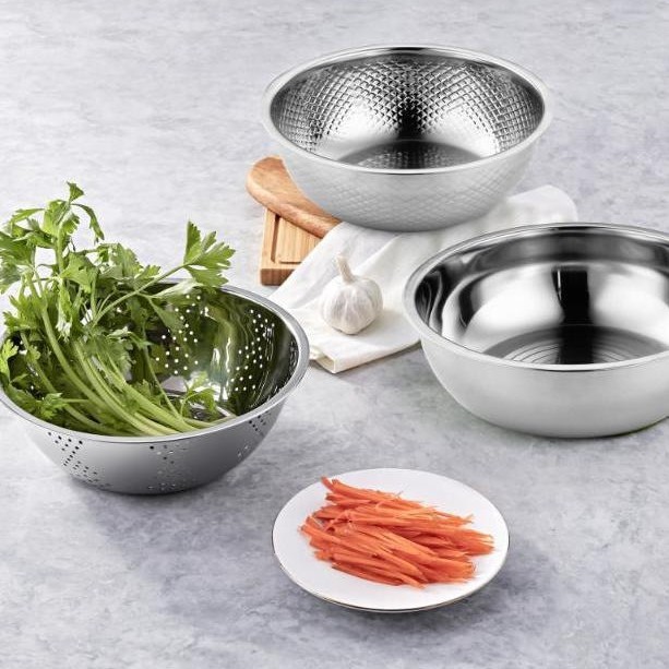 Boubao BDY-D001 キッチン三宝家庭用ステンレス鋼の果物と野菜の洗面器と米ふるいの 3 点ギフトセット
