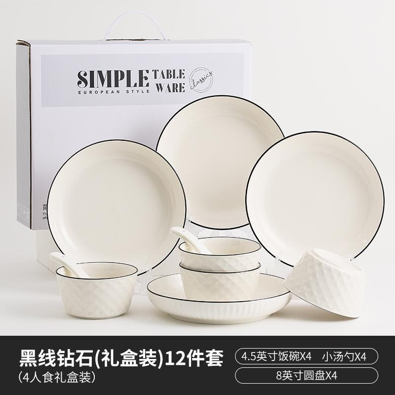 Junmei ブラックラインダイヤモンドシンプルな家庭用セラミック食器クリエイティブボウル、プレート、スプーンセットビジネスイベントのお土産